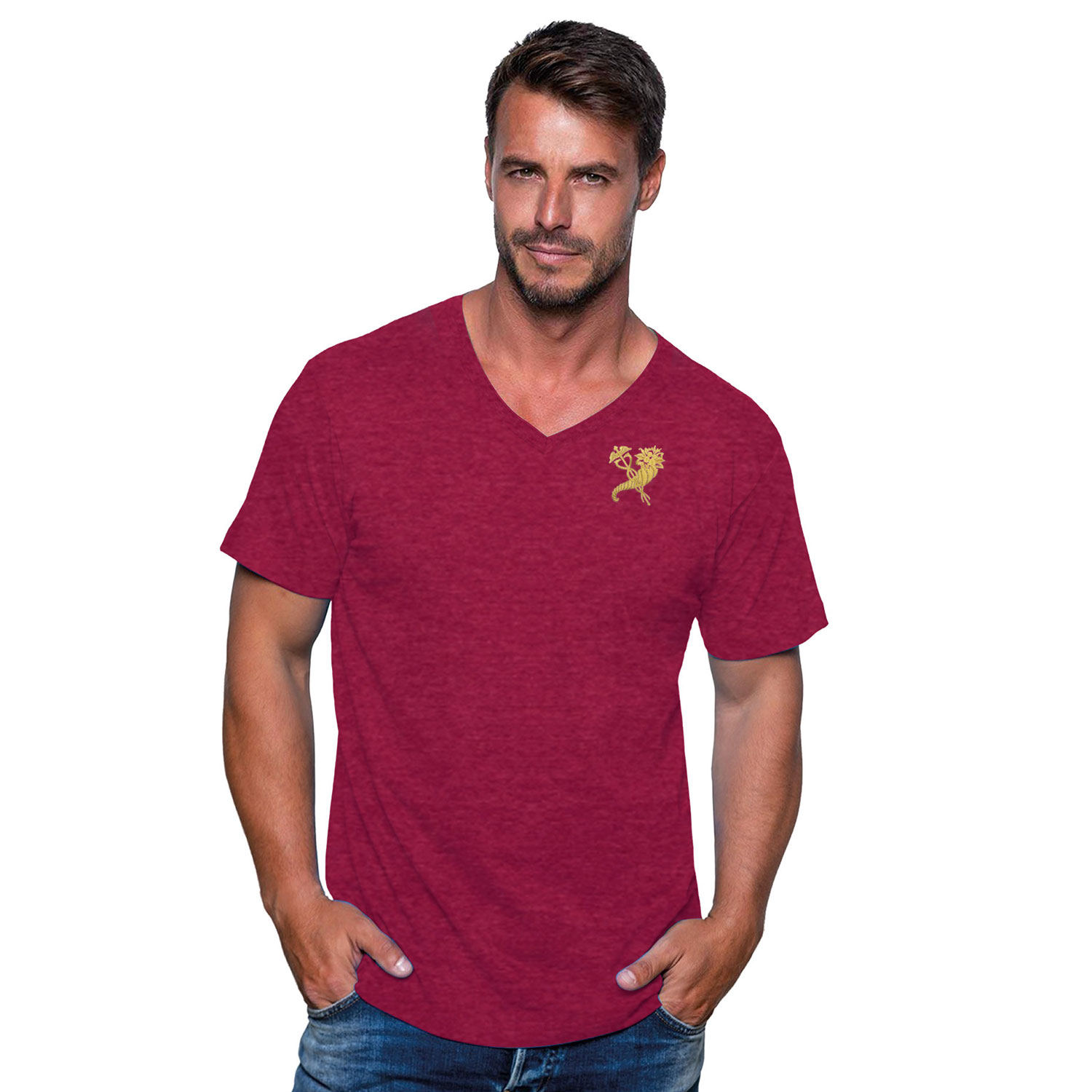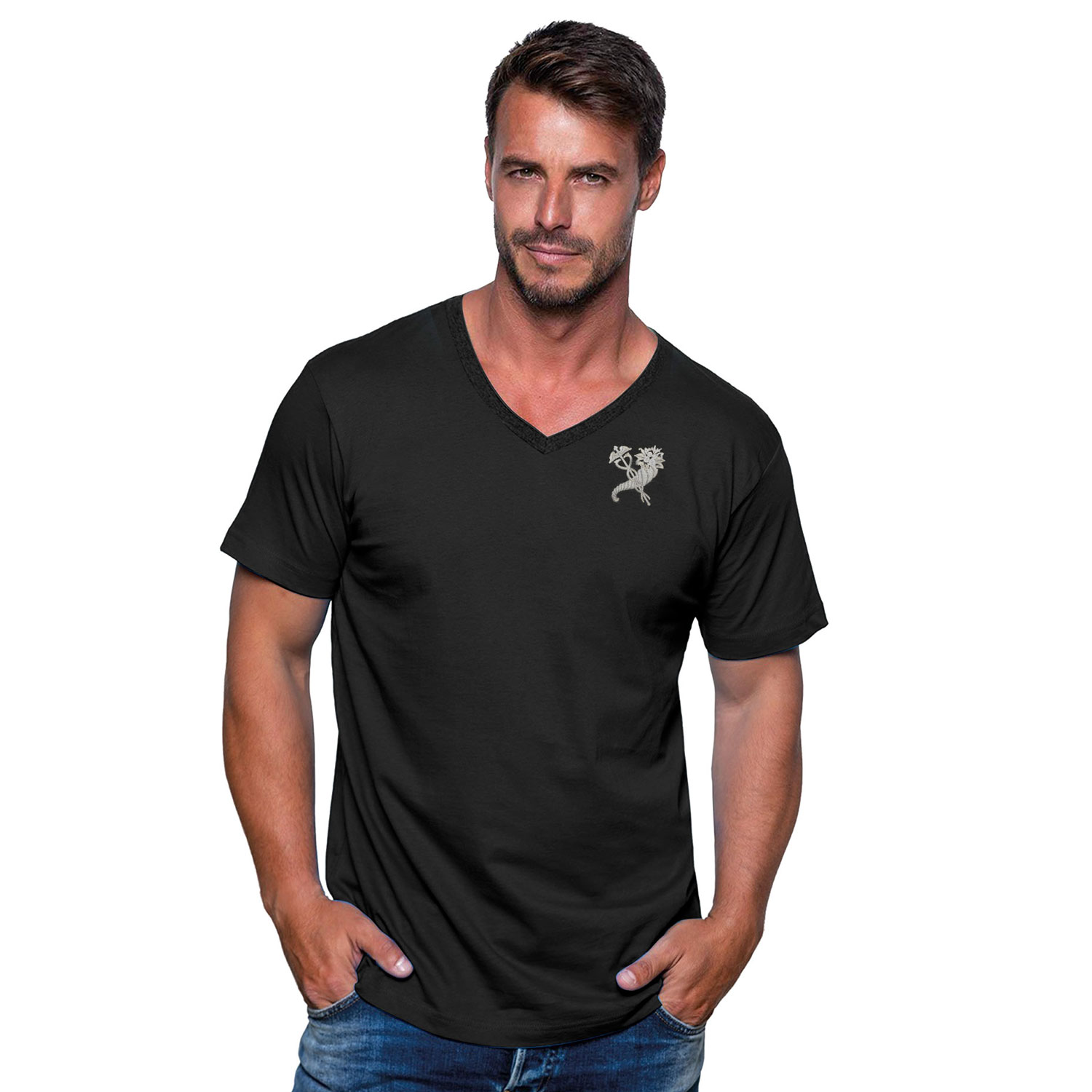 - Модель: футболка з V-вирізом, бокові шви, посилені плечові шви